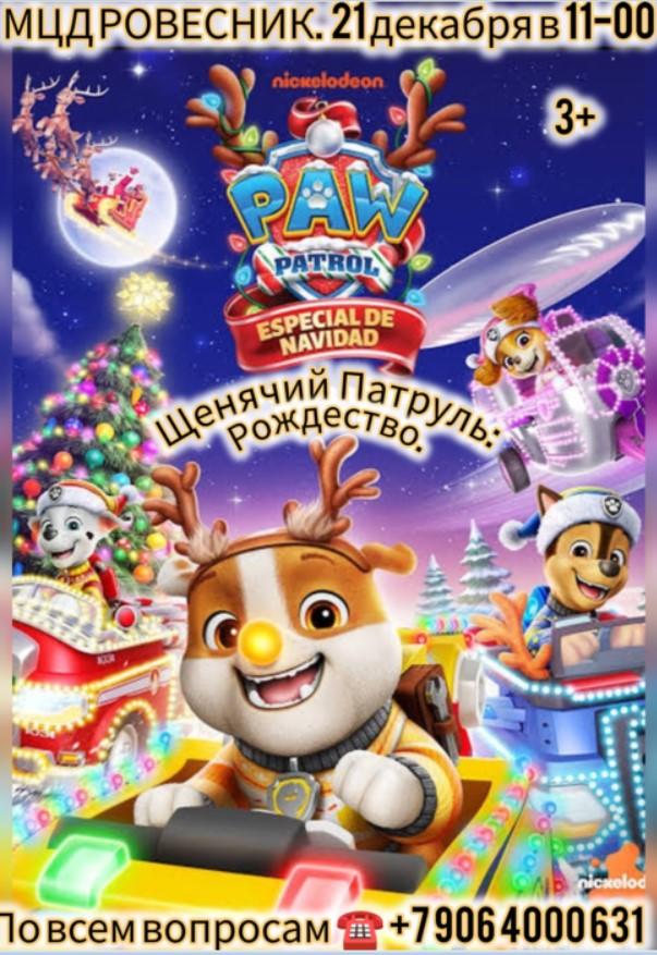 МДЦ Ровесник приглашает 21 декабря в 11-00 малышей на премьеру мультфильма "Щенячий Патруль, Рождество"